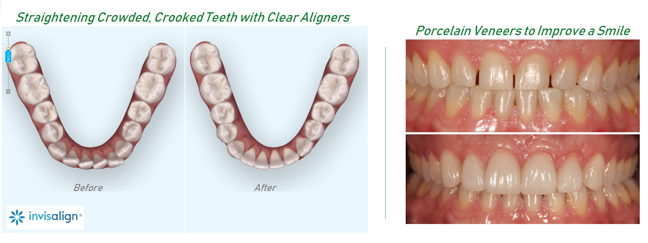 There is some reason you clicked on this page. You might be wondering how we can improve the appearance of one front tooth, revamp several front teeth with porcelain or bonded veneers, or completely reconstruct a dozen or more teeth with crowns or an all-on-four implant-supported prosthesis. Or perhaps you are missing some teeth, and looking for replacement options like bridges or implants. Or, maybe you love your teeth, but you didn't wear your retainer after you had braces as a teenager (don't worry, we understand... we've been there too!) and you want to have them straightened again.